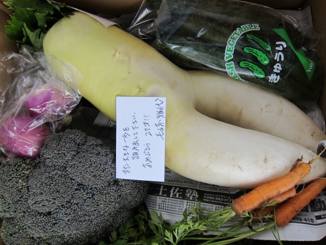ヨウヘイの27歳の、お誕生日に野菜を送りました。
