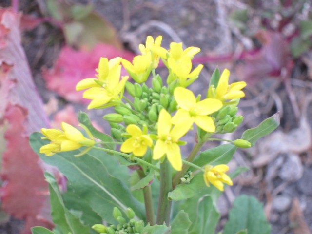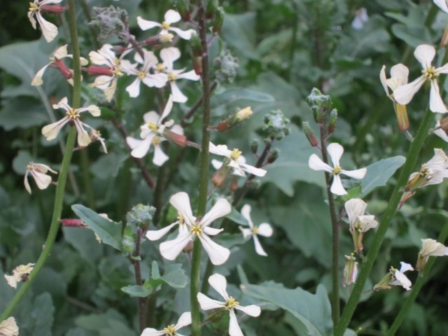 ルッコラの、白くて、ゴマの香りがする花も咲きほこっています。