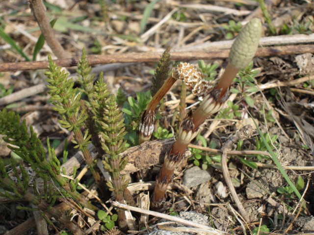 ハウス横の土手に、ツクシがニョキニョキ。野焼きした後に力強く、伸びあがっています。