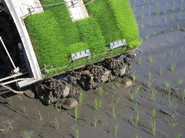 大興奮の子供達は、田植え機が始動すると「お米!お米!」と、大合唱。