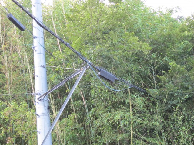 なんか、伸びた竹にも怒れず、そんなとこにしか、電線引っ張っれないのが仕方ないのか・・・。
