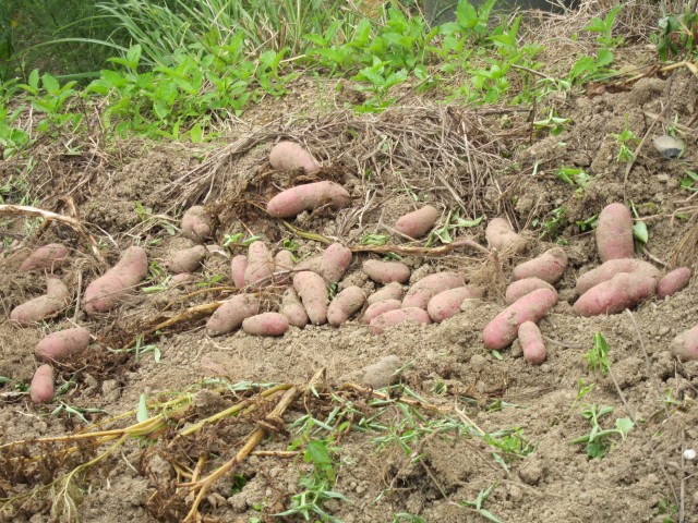 何かといろいろ忙しく、すっかり掘るタイミングが遅くなりましたが、ちょうど、キュウリが終わり、いろんな野菜も無くなった頃にこんな、楽しいジャガイモが!