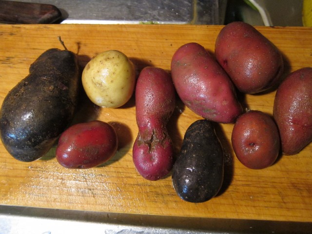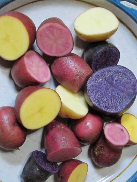 男爵、ノーザンルビー(中ピンク)、インカのめざめ(中黄色)、シャドークィーン(鮮やか紫)の4種類。