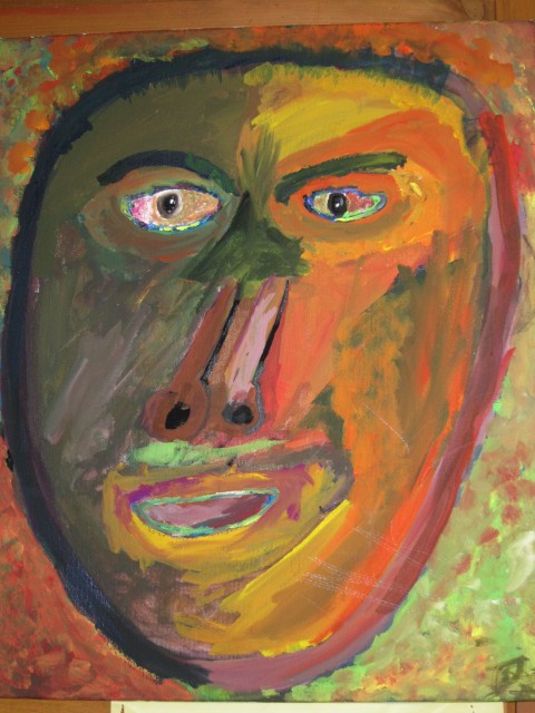 キャンバスいっぱいに描かれた、ヤケクソのような、大胆な自画像に思わずひとり笑ってしまいました。