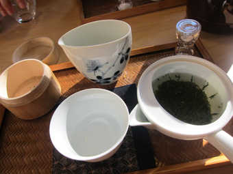 土佐茶のおいしい入れ方のレクチャーを受けながらの、