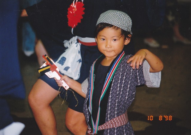 3歳の息子が、花メダルをもらい狂喜乱舞する母の隣で、訳もわからず、よさこい発デビュー。
