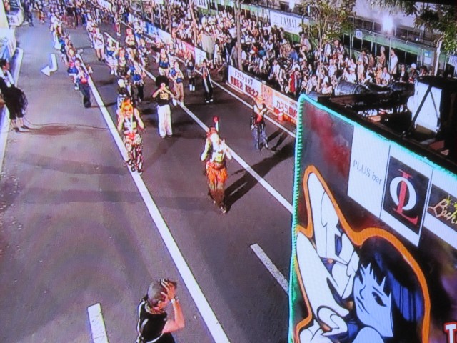 拾ったウチワを片手に、沿道でノリノリで踊りながら見ていたら・・・
