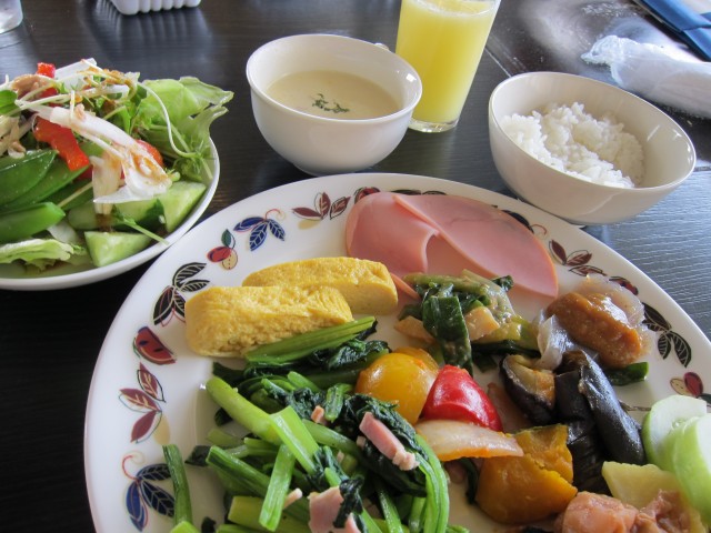 サラダ、冷たいコーンスープ、小夏や、やまもものジュースもあり、ついつい食べ過ぎてしまいます。