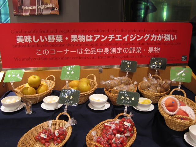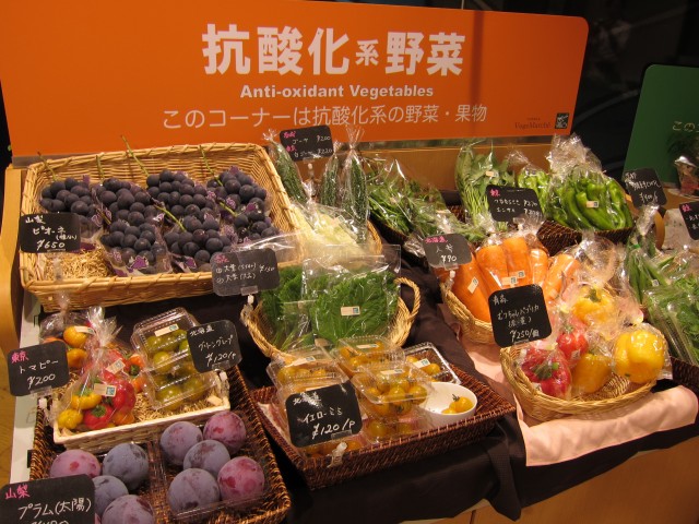 野菜や果実の持つ力(アンチエイジングパワー)を、全品測定し、効能別に展示販売しています。
