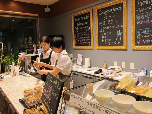 店内のキッチンでは、フレッシュジュースや、サラダなど、野菜の力で元気になるデリコーナーもあり、アークヒルズ周辺の、ビジネスマンの働く力にもなっていいるようです。