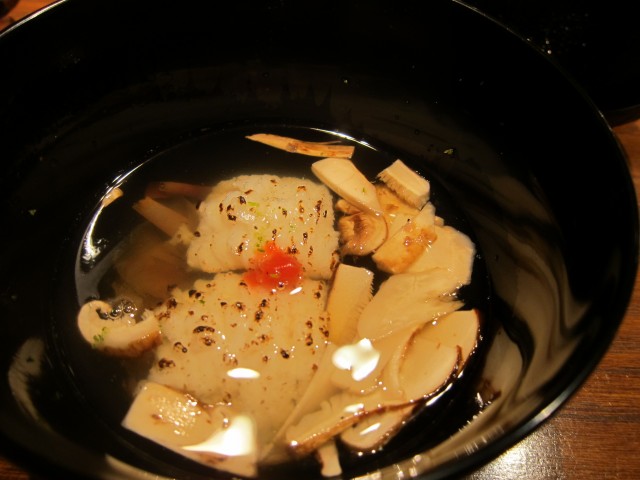 ノドグロのお刺身から始まり、鱧、秋刀魚、フォアグラ、地鶏、鯛、松茸・・・