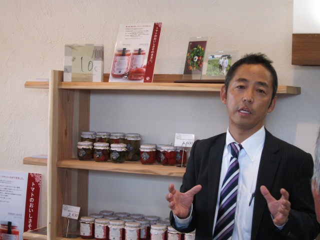 蔵田さんが、トマトソース、ジンジャエール、ピクルスなどの商品のご説明。