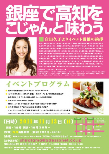 ジュニア野菜ソムリエで、ベジフルビューティアドバイザーの資格も持つ、久子ちゃんは、銀座の高知県アンテナショップで11月13日に、高知の食材やお酒を楽しんでもらおうと、自らイベントを企画開催するのです。「土佐おきゃく伝」
