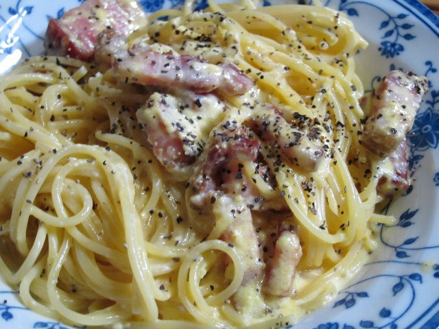 昔、伊太ママからイタリア土産にもらったパンチェッタで作ったような、コクのあるカルボナーラになりました。