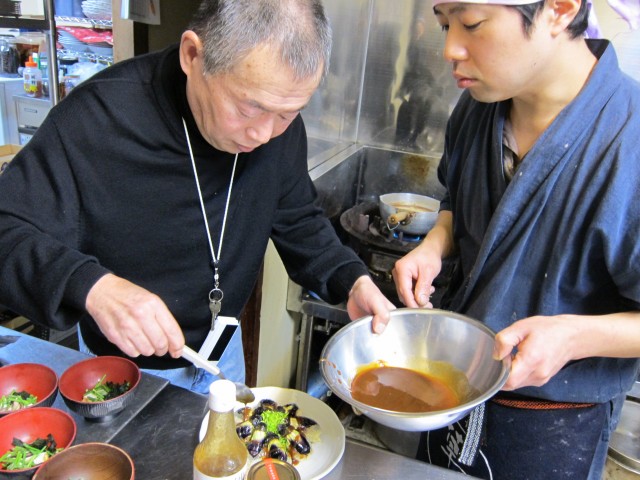 中華料理の鉄人が、草やの厨房で、熱血指導です。