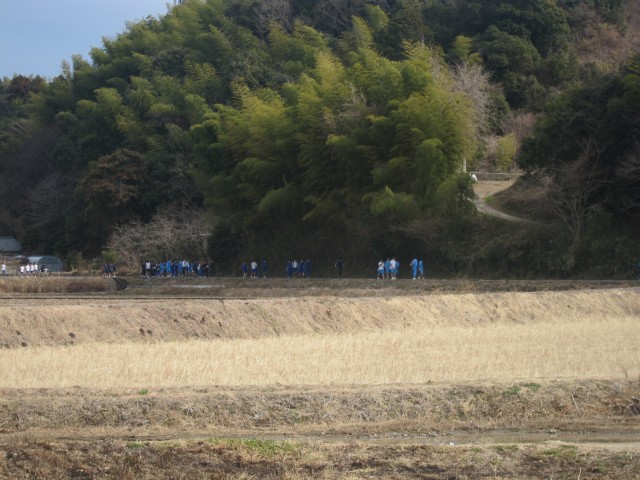 息子の2月の学校行儀「錬歩会」は、うちのハウスの横の川を隔てた小道がコースになっています。