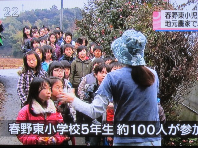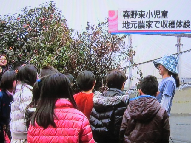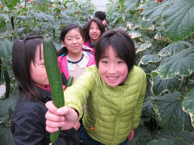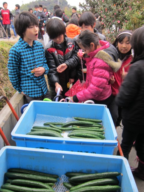 囲み取材を受けるほどのニュース?、小学生きゅうり収穫体験