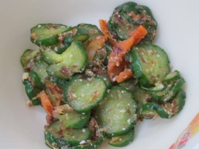 昨日収穫したキュウリのメニューは、「キュウリの土佐漬け」。