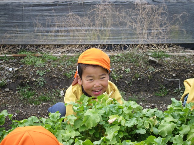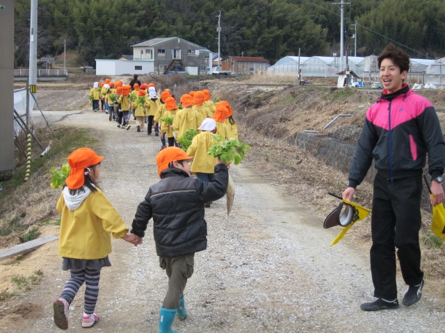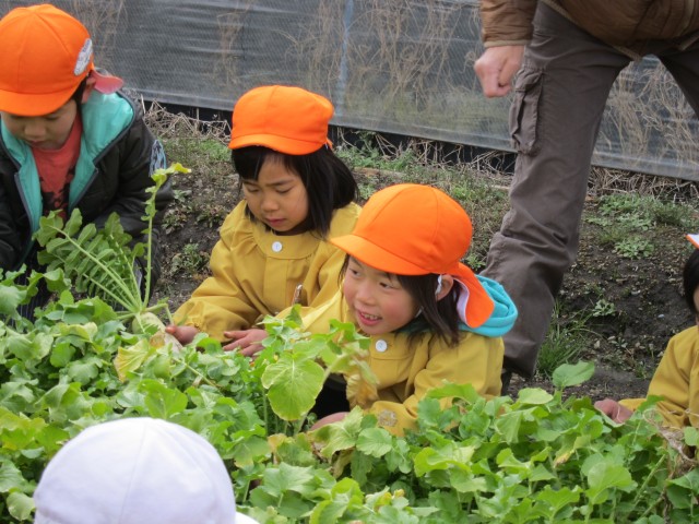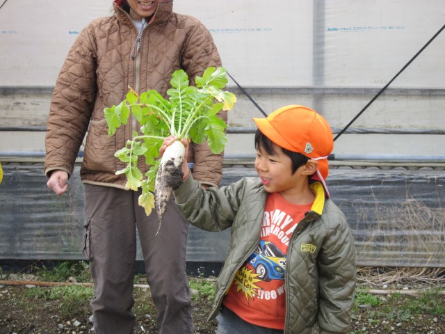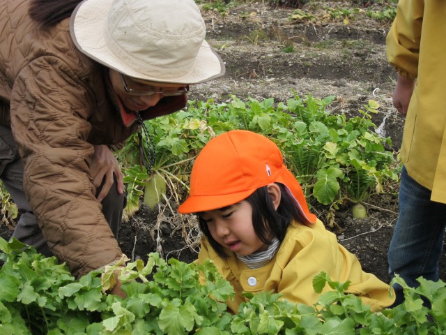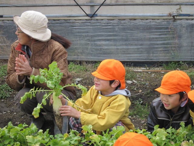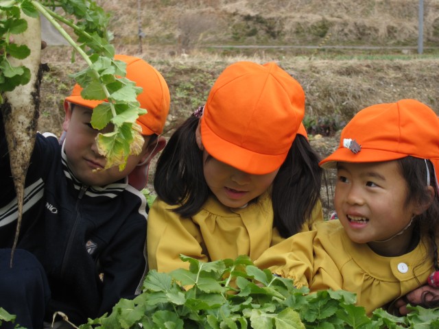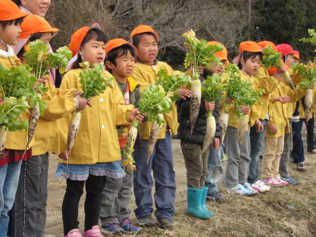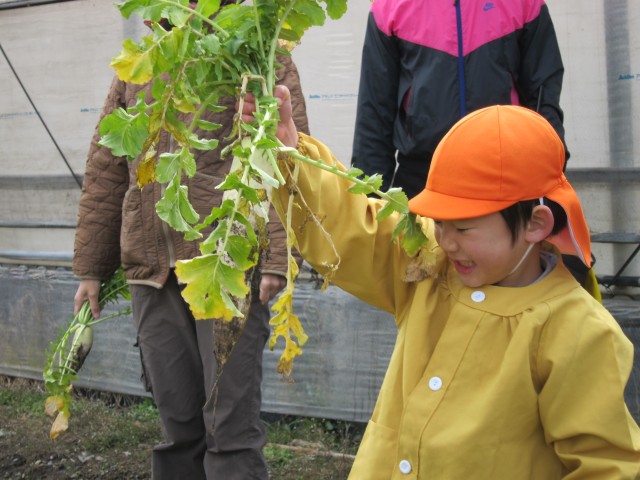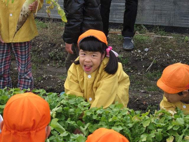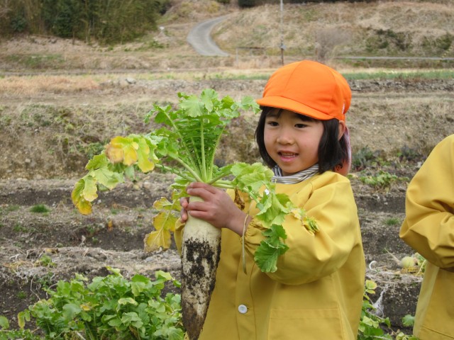 うららか保育園、大根収穫体験。