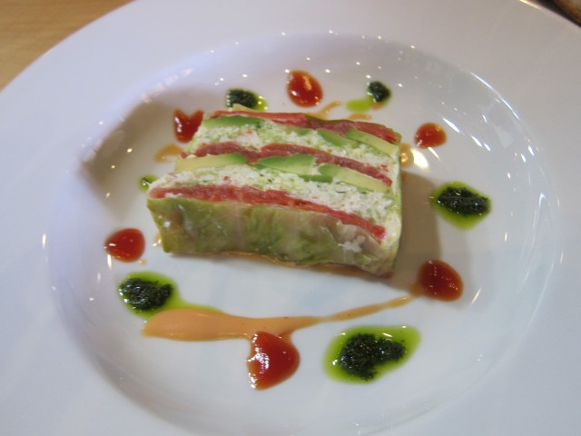 テリーヌの中には、タラバ蟹、アボガド、そしてセミドライトマト。