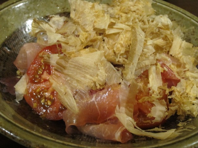 土佐バルの志摩シェフは、藁工のTシャツと前掛けで頑張ってました。