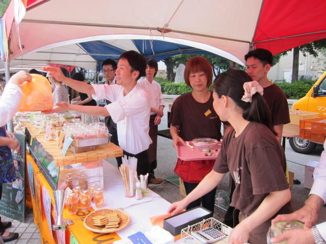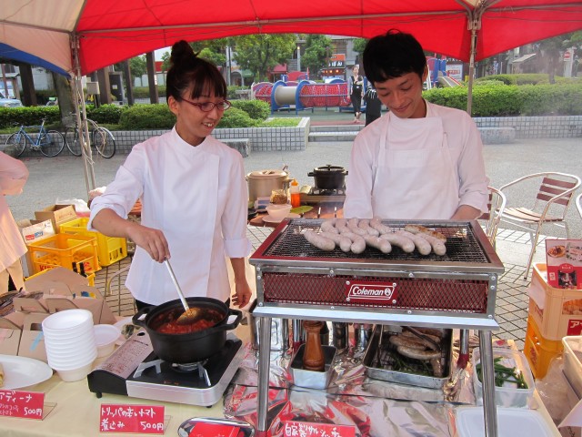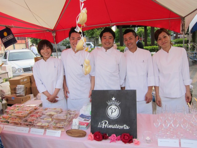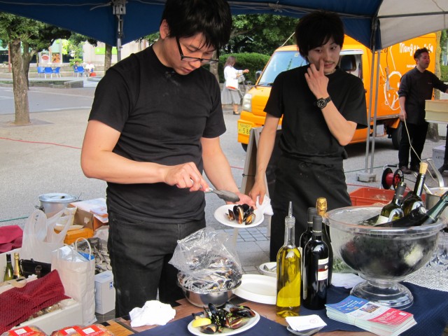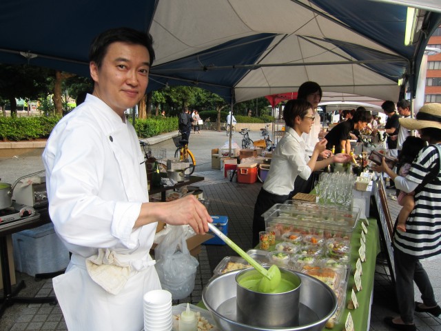 東京から来たばかりでこのイベント参加の、ヴァレリアン伊東シェフは後方で奮闘中。