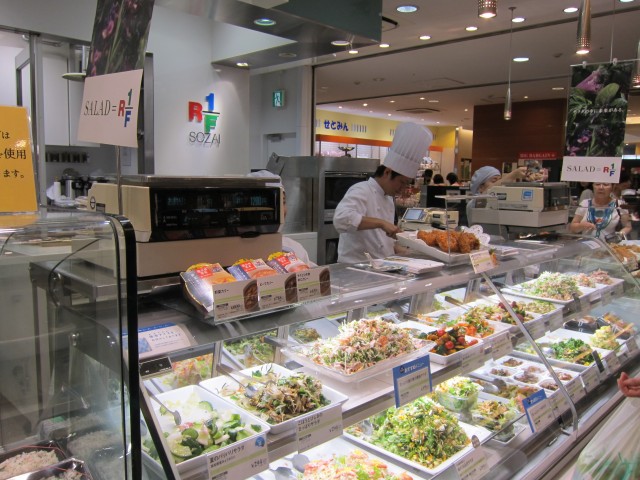 同じく、岡山駅構内のデリには、サラダがズラリ。
