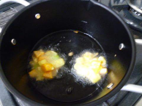 コリンキー、ベジコじゃがいもは、サイコロ状に切り、