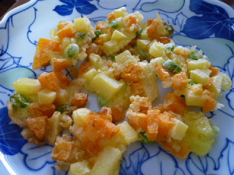 枝豆をたして、天ぷら粉とまぜあわせ、