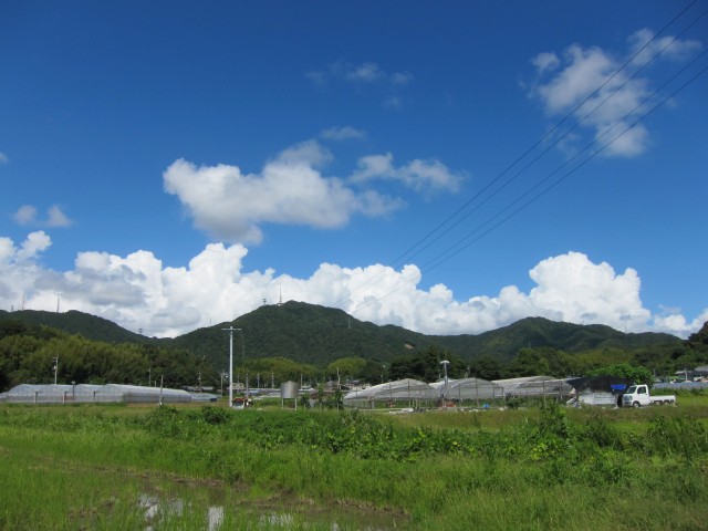 台風接近前の、フェーン現象?真夏のような天気に恵まれ、ビニール張り完了!