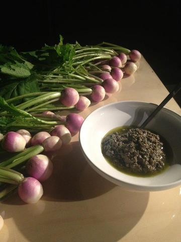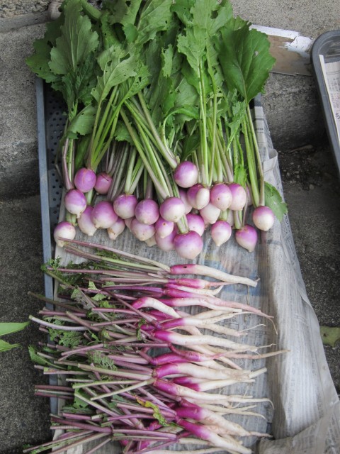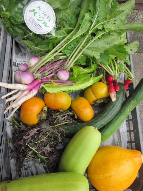 持ちこんだコリンキーやルッコラが、お刺身のツマになってて、感動しました。