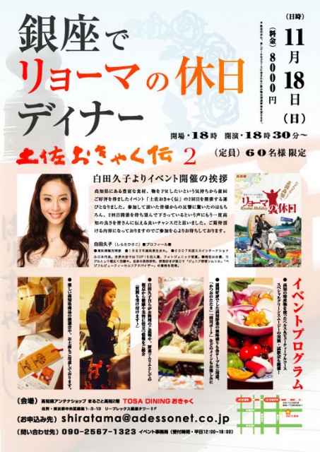 11月18日(日)白田久子ちゃん主催の、高知の食材PRイベントin高知県アンテナショップまるごと高知(銀座)!