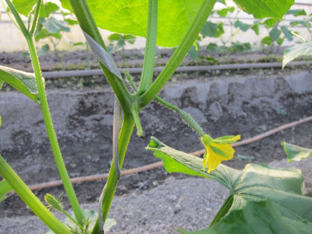 ちらほら、花が咲き始め、キュウリの実も大きくなってきました。