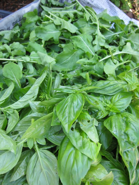 コリンキー、あやめ雪、いんげん豆、四角豆、バジル、イタリアンパセリなどいろいろ使っていただきましたが、なかでも、石川シェフに、強烈な印象を与えたのはルッコラ。