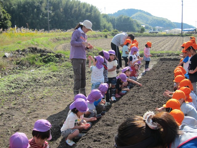 田園が近いこともあり、田植え、稲刈り、園庭野菜栽培など、子供達に食育&食農体験を、積極的に行っています。