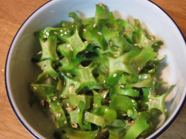 シャキシャキ歯ごたえがたまらない、四角豆のナムルの完成!