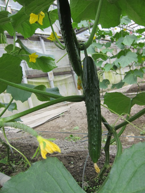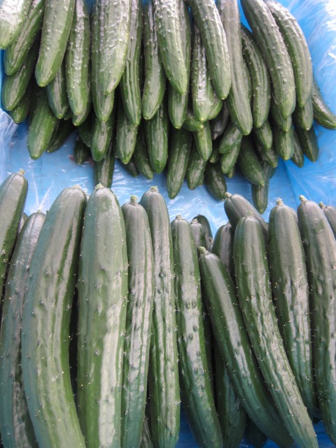 初出荷のキュウリを、片手に、