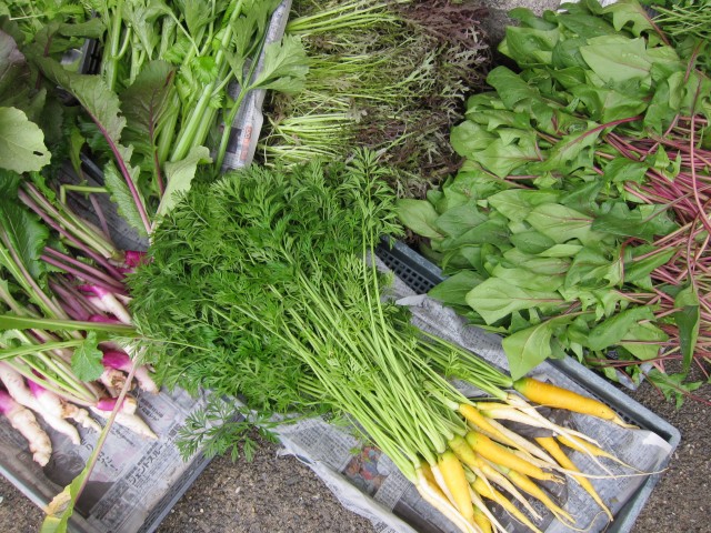 色々大根、あやめ雪、人参葉も綺麗です。