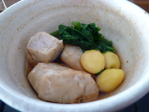 赤目芋の中が、やわらかく揚がったら、器に盛り付け、
