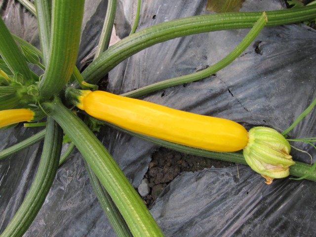 田植え前から、植えていたズッキーニは、ツヤツヤの実になり、ゴールデンウィーク前に収穫を迎えました。