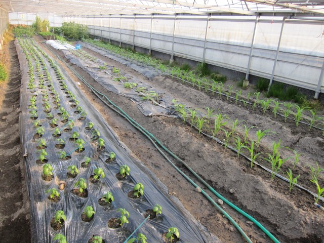 初夏のような陽気に、ハウスの中も夏野菜に!