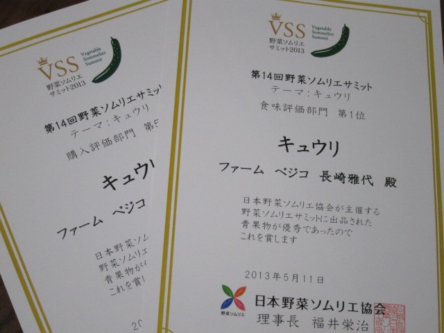 「野菜ソムリエサミット2013キュウリ部門」で、
