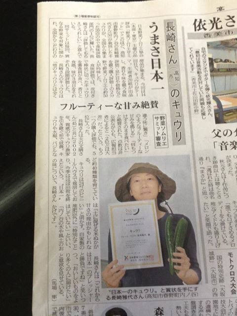受賞後2週間以上たっての高知新聞掲載に、お問い合わせや、ご注文をたくさんいただきましたが、残念ながらキュウリは11月までお待ちいただくことに・・・。