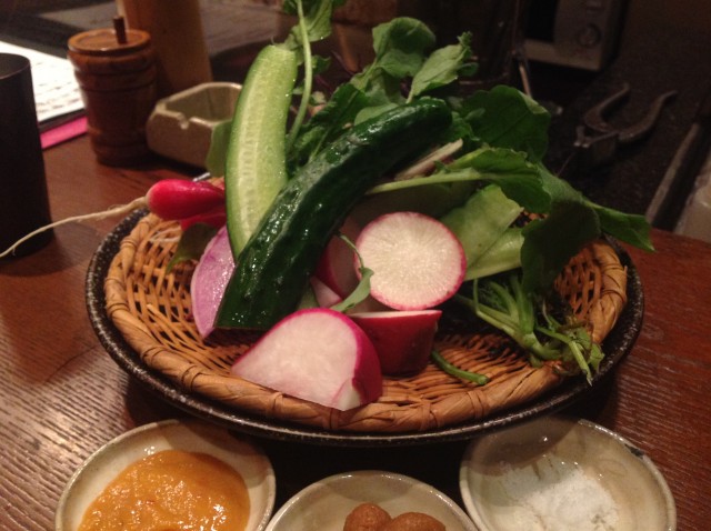 「庵Guri中目黒店」。お味噌と共に丸々1本を、豪快に提供してくださっています。