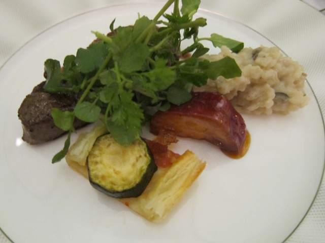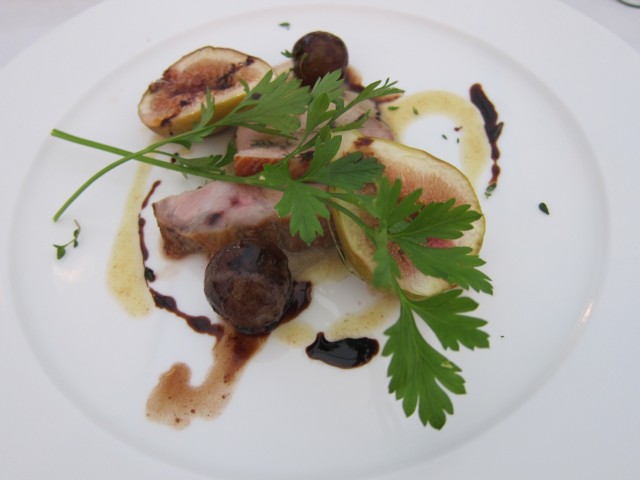 2皿目は、窪川ポークローストと茄子と胡桃のソース、イチジクと新婦加枝ちゃんのお父さんが作った巨峰添え。