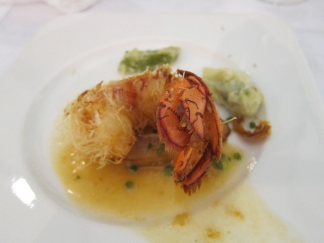 オマール海老のカダイフ包み焼きには、うちのナタ豆と堤農園、堤くんのオクラのフリットが添えられてました。