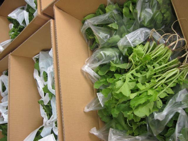 大根葉の入った段ボールを眺めながら、