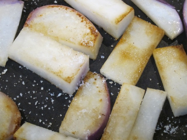 お塩だけで十分美味しい温サラダになりました。
