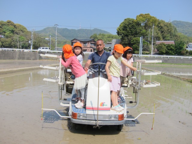 田んぼの真ん中で、風を感じながら、お米が出来る始まりを体験することは、きっといい感性が芽生えるきっかけになるはず!みんなの歓声と笑顔から、感じました。