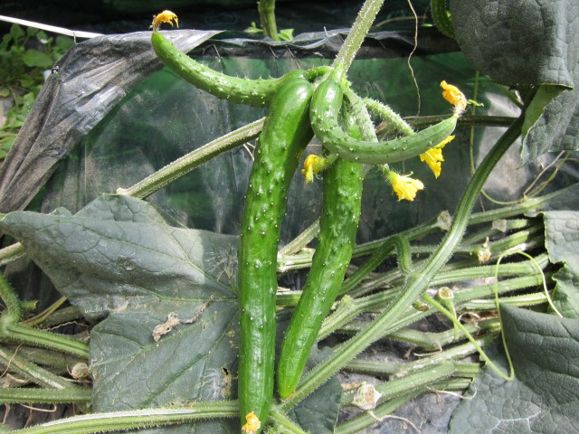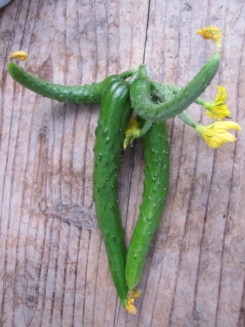 このままおいても、木の負担になるので、取ってしまいましたが、みんなで踊ってるみたいな、キュウリ7兄弟でした。